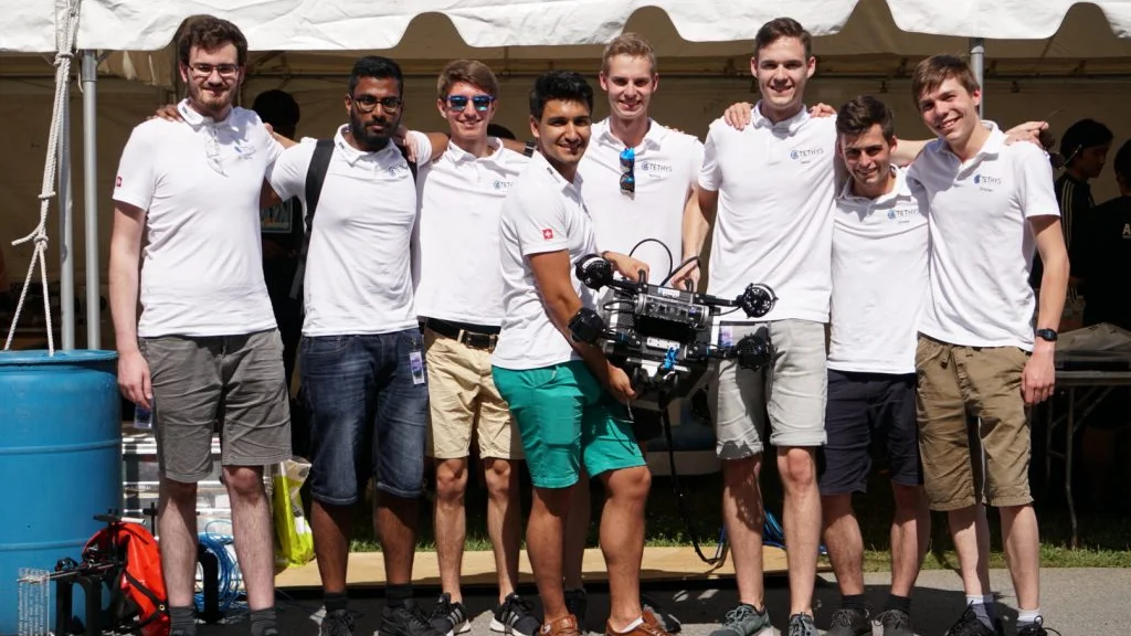 Dass die Schweiz keinen Meeresanstoss hat, war dabei kein Hinderungsgrund, sich auch international zu messen: Die acht Studenten meldeten sich beim internationalen Unterwasserroboter-Wettbewerb der «MATE ROV Competition» in Tennessee, USA an und arbeiteten fortan drei Monate lang rund um die Uhr. Als sie im Juni 2019 in Tennessee den Boden betraten und ihr Roboter mit dem Namen «Scubo» das erste Mal im olympischen Schwimmbecken nach Gegenständen tauchte, war die Erleichterung gross. Tethys Robotics schaffte es direkt unter die besten 10 Teams.